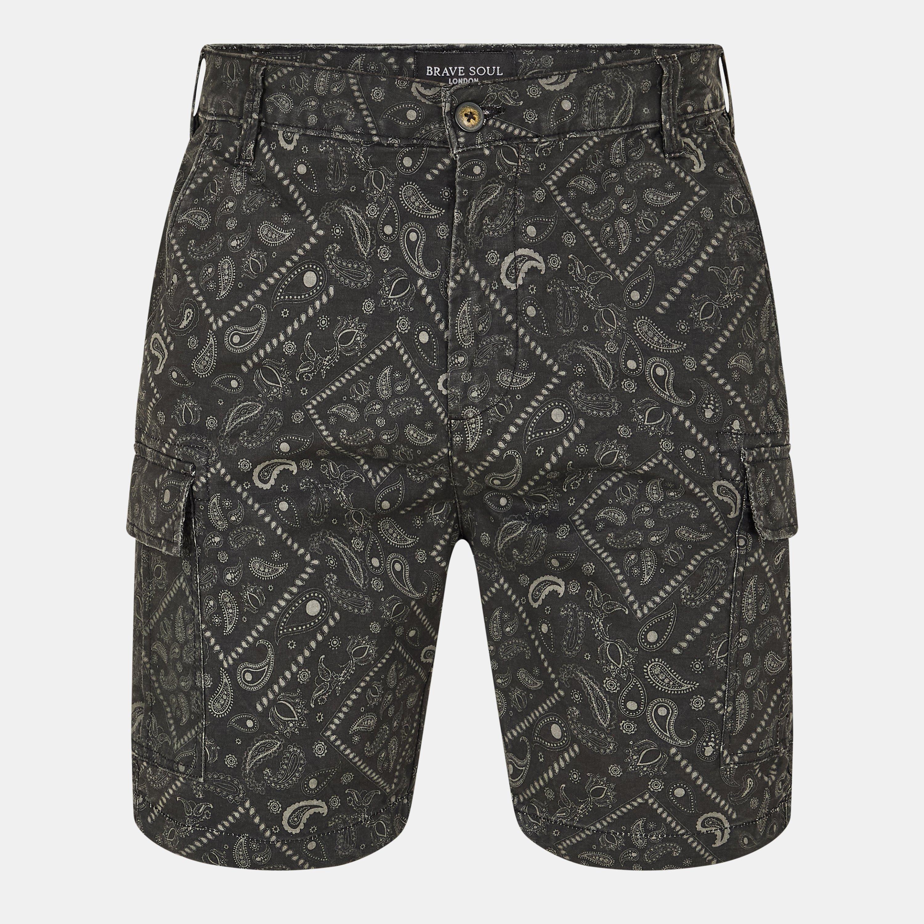 Brave Soul muške kratke hlače. Dužine do koljena, cargo stil. Dva cargo džepa s skrivenim dugmadima, s printom bandane.