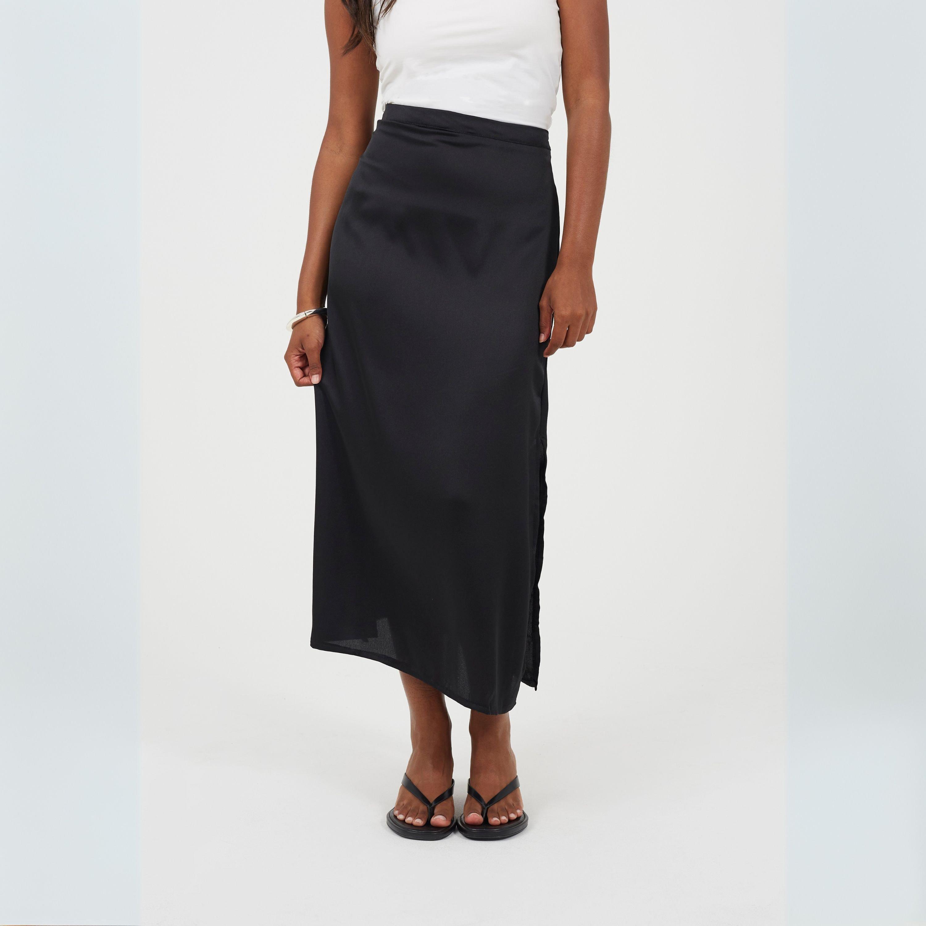 Brave Soul suknja. Maxi dužina, saten s sjajnim završetkom. Jednobojna, lepršavi rub.