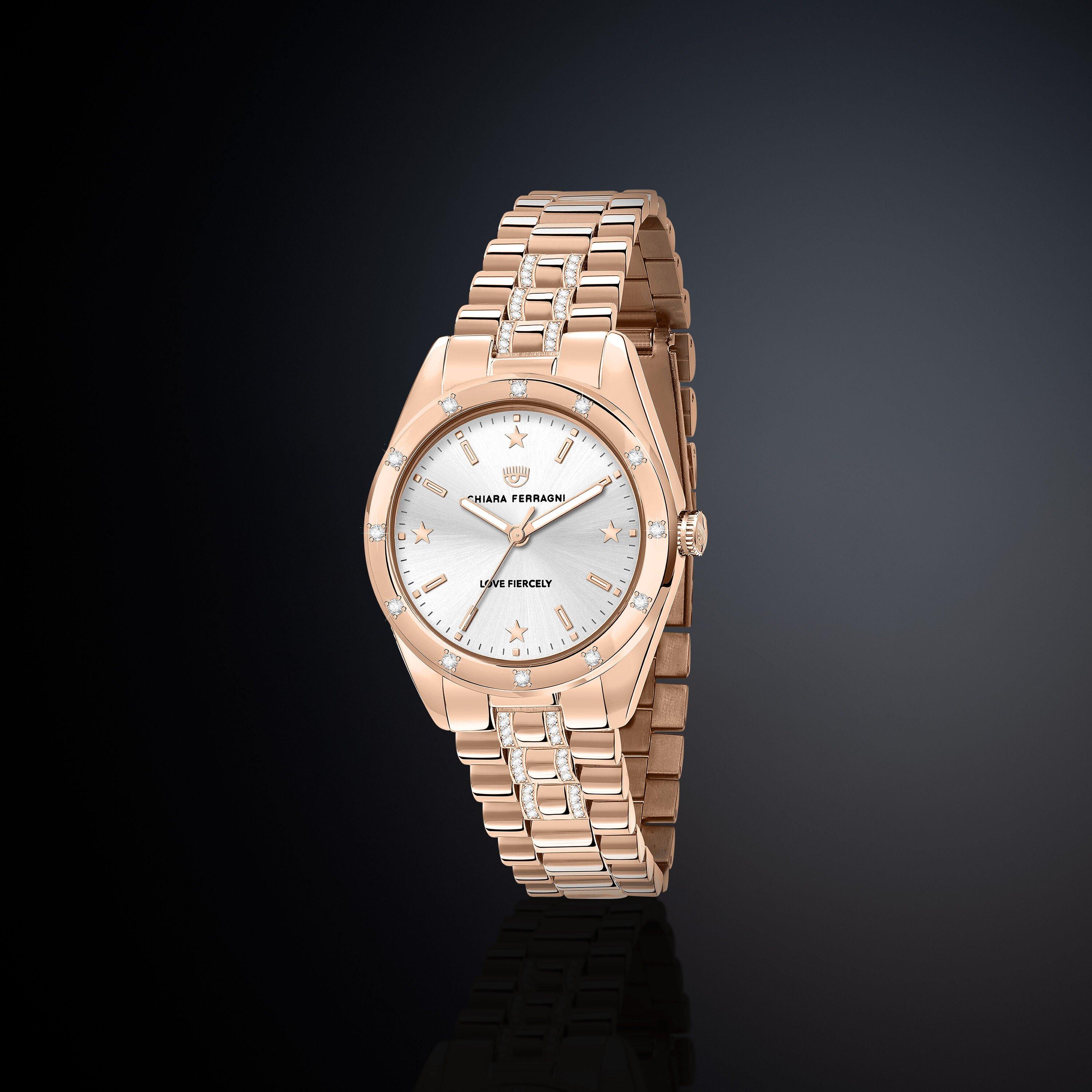 Satna analogna kvarcna sat Chiara Ferragni ima upečatljiv dizajn kućišta s preciznim kvarcnim mehanizmom za pouzdano mjerenje vremena.