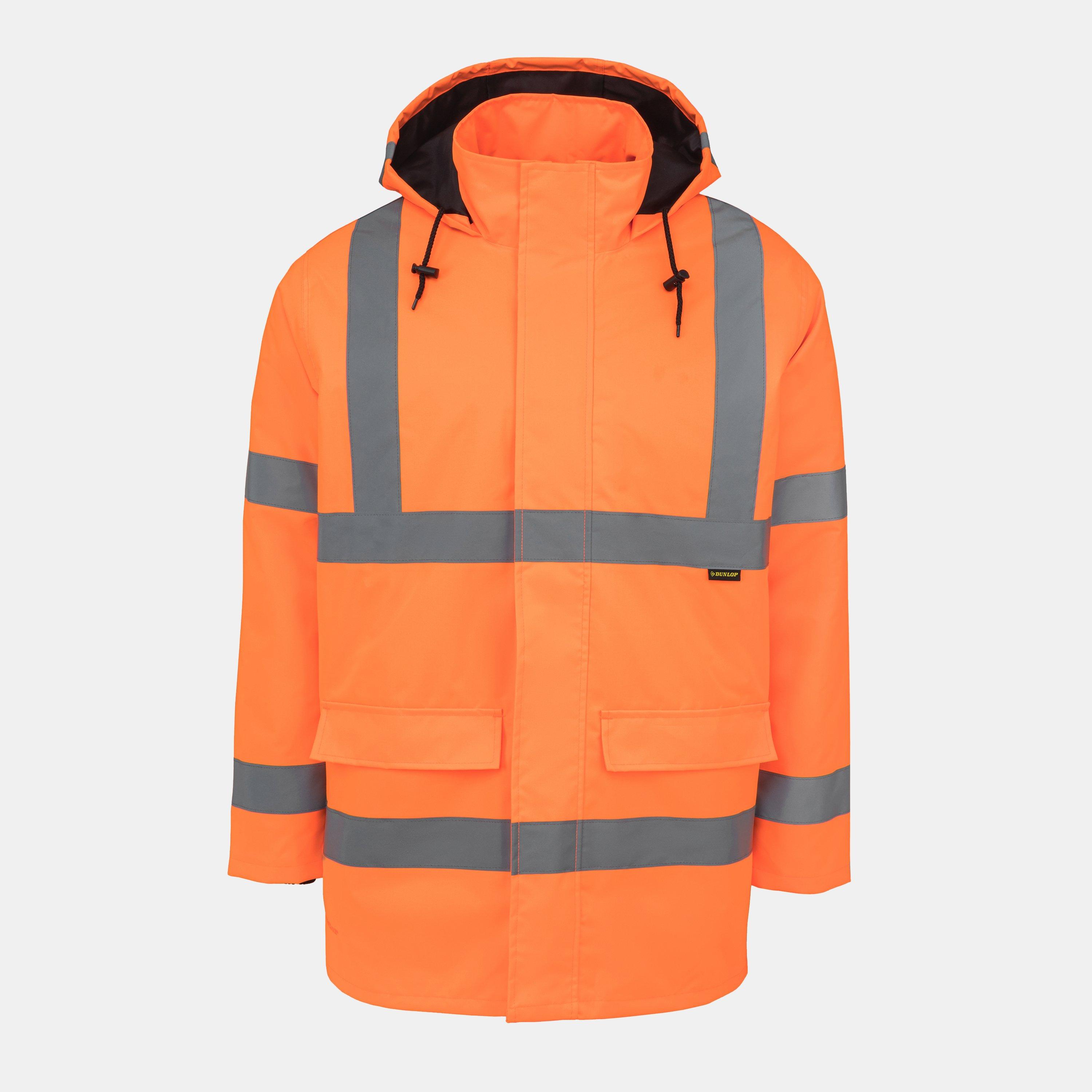 Dunlop Vodootporna Hi-Vis Jakna nudi osnovnu sigurnost s praktičnom zaštitom. Sadrži VizLite reflektirajuće pruge i dizajn visoke vidljivosti za maksimalnu vidljivost, ova parka uključuje podstavu s jastučićima i sklopivu kapuljaču koja štiti od kiše dok održava udobnost u zahtjevnim radnim okruženjima.