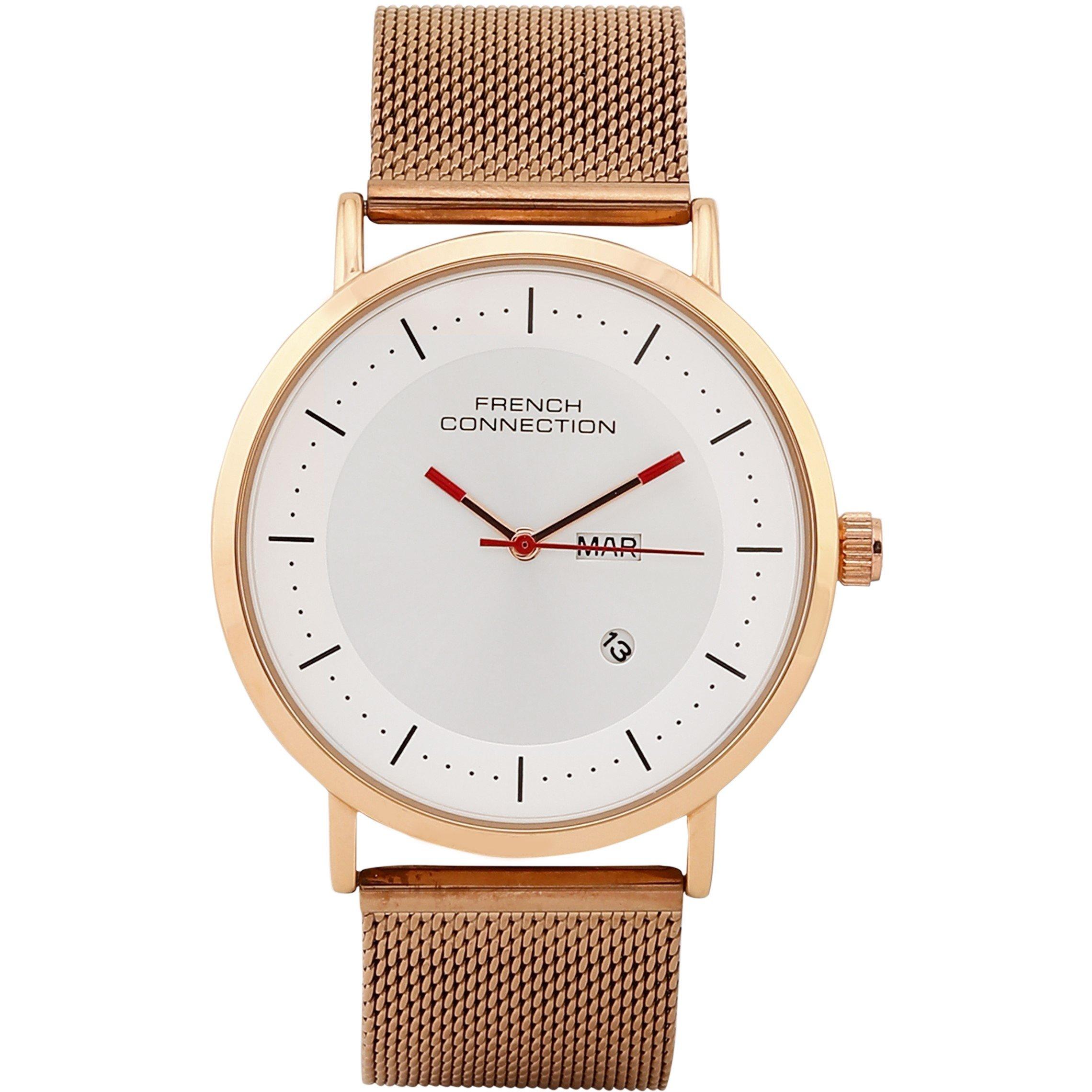 French ConnectionConnection Ikon SILVER Round Analog Watch With Rose Gold Strap for Men