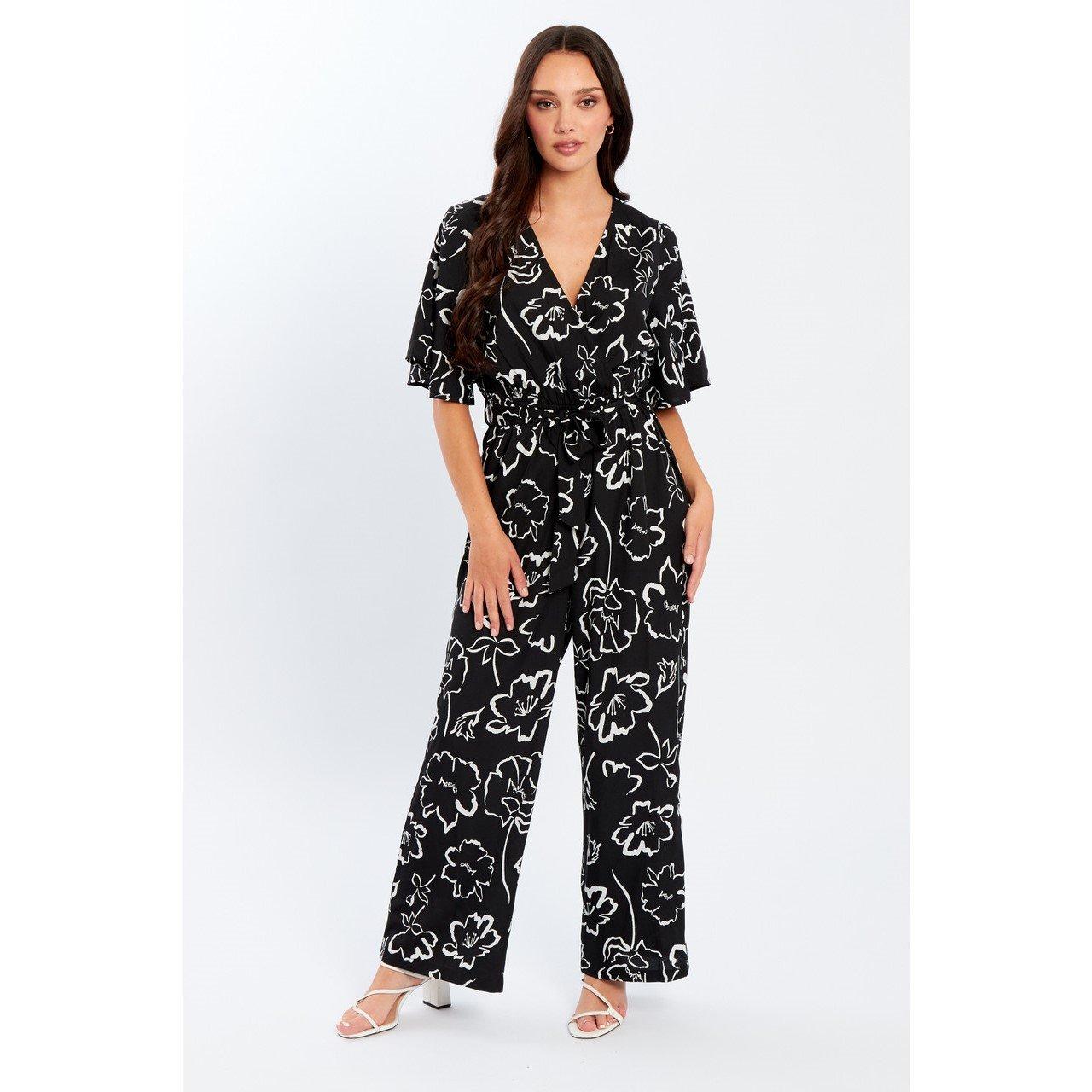 Influenceov Infinity Angel Sleeve Jumpsuit sadrži detalje s lepršavim rukavima i oblikom koji se lijepo uklapa. Feminin dizajn mode stvara jednostavnu opciju odjeće u jednom komadu koja se besprijekorno prelazi iz dnevne u večernju odjeću.