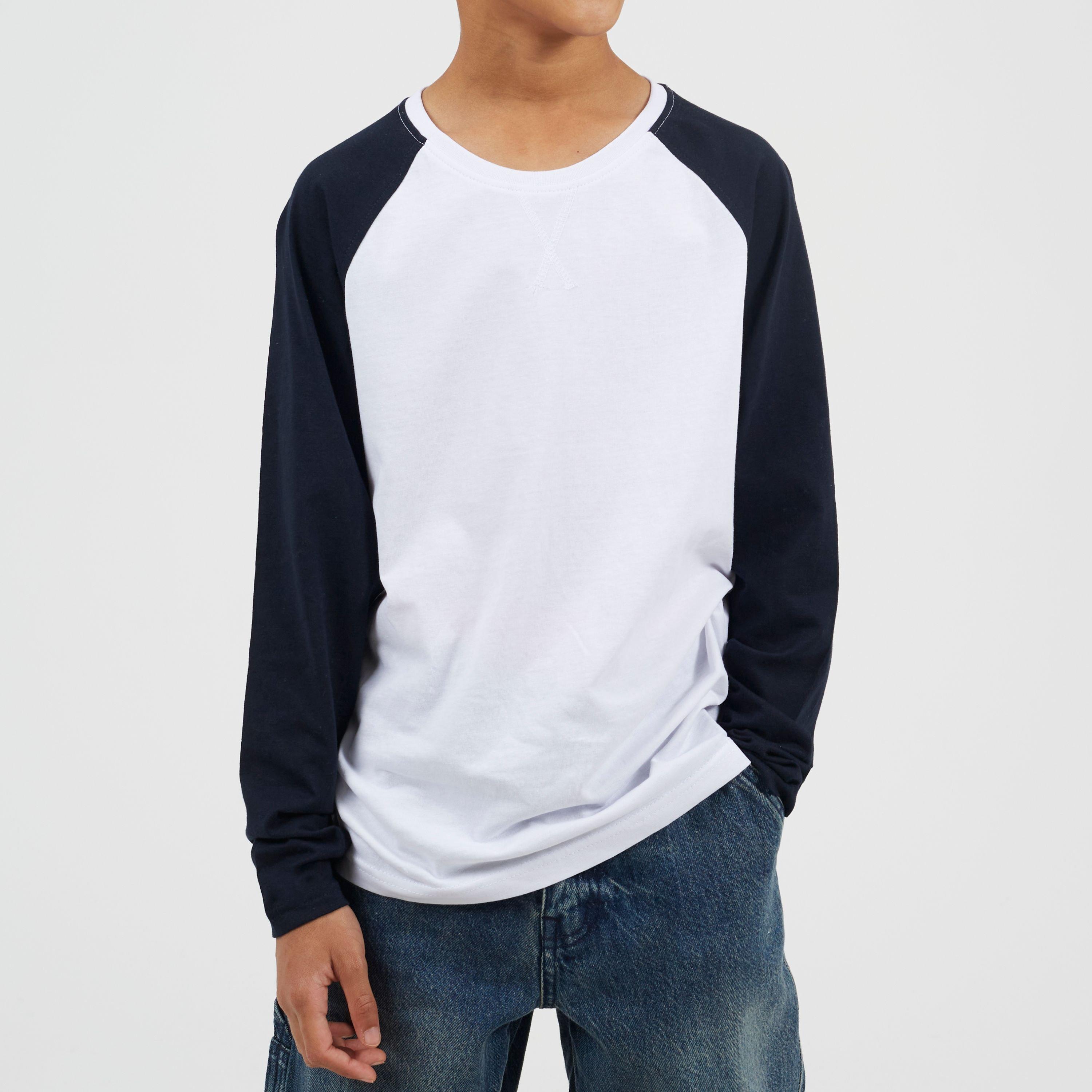 Boys Long Sleeve Crew Neck Tee with Contrast Raglan Sleeves