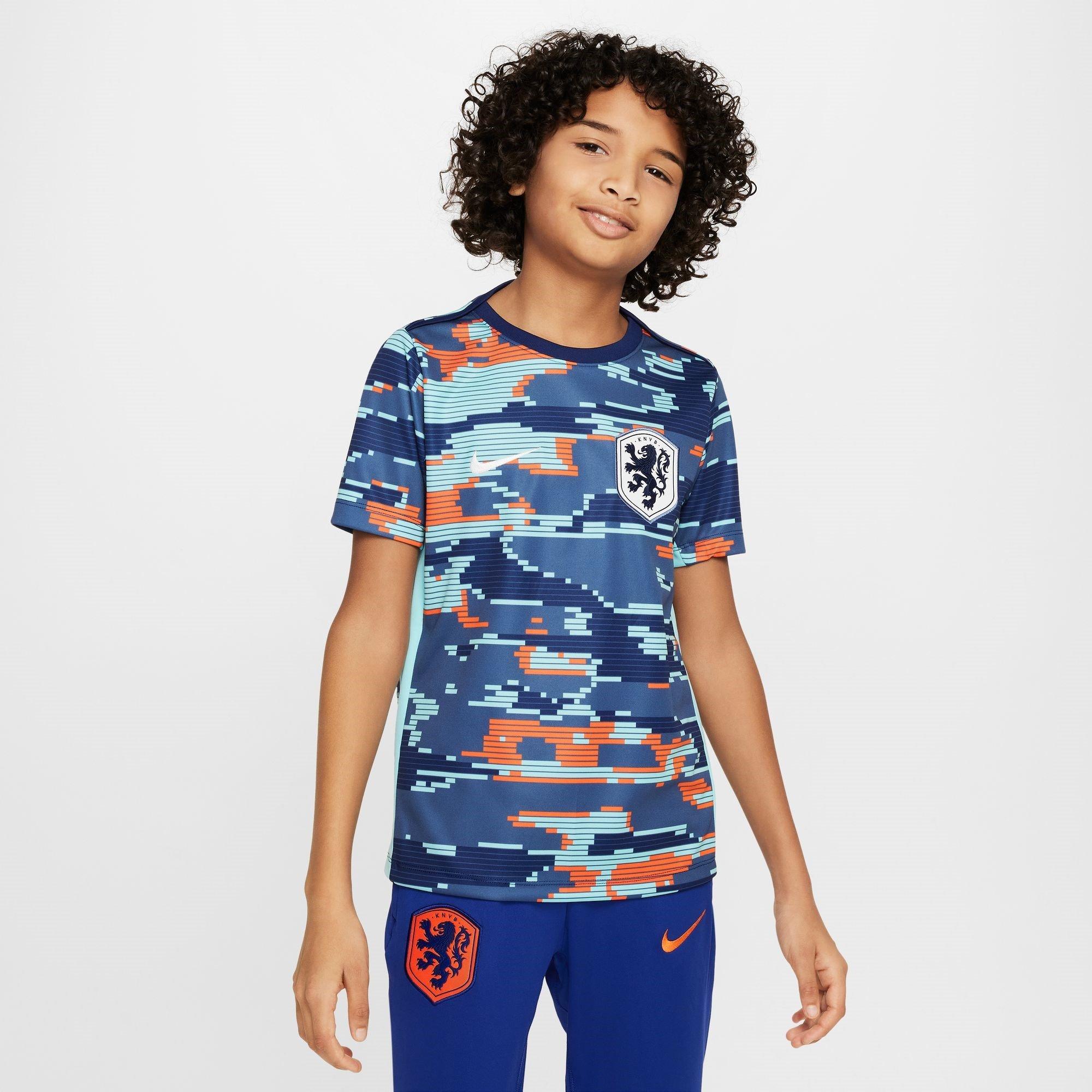 Dizajnirana s živopisnim uzorkom koji se proteže po cijeloj majici, ukrašenim dodirima zemljine karakteristične narančaste boje, ova majica za trening utjelovljuje snažan duh Nizozemske. Vaša mala legenda doživjet će neusporedivu udobnost i performanse zahvaljujući uskom i strujanom kroju, a zahvaljujući inovativnoj tehnologiji koja uklanja vlagu, ostati će hladni i suhi dok guraju svoje granice na terenu. Ova Nike Dri-FIT tehnologija brzo uklanja znoj s kože, omogućujući brže isparavanje.