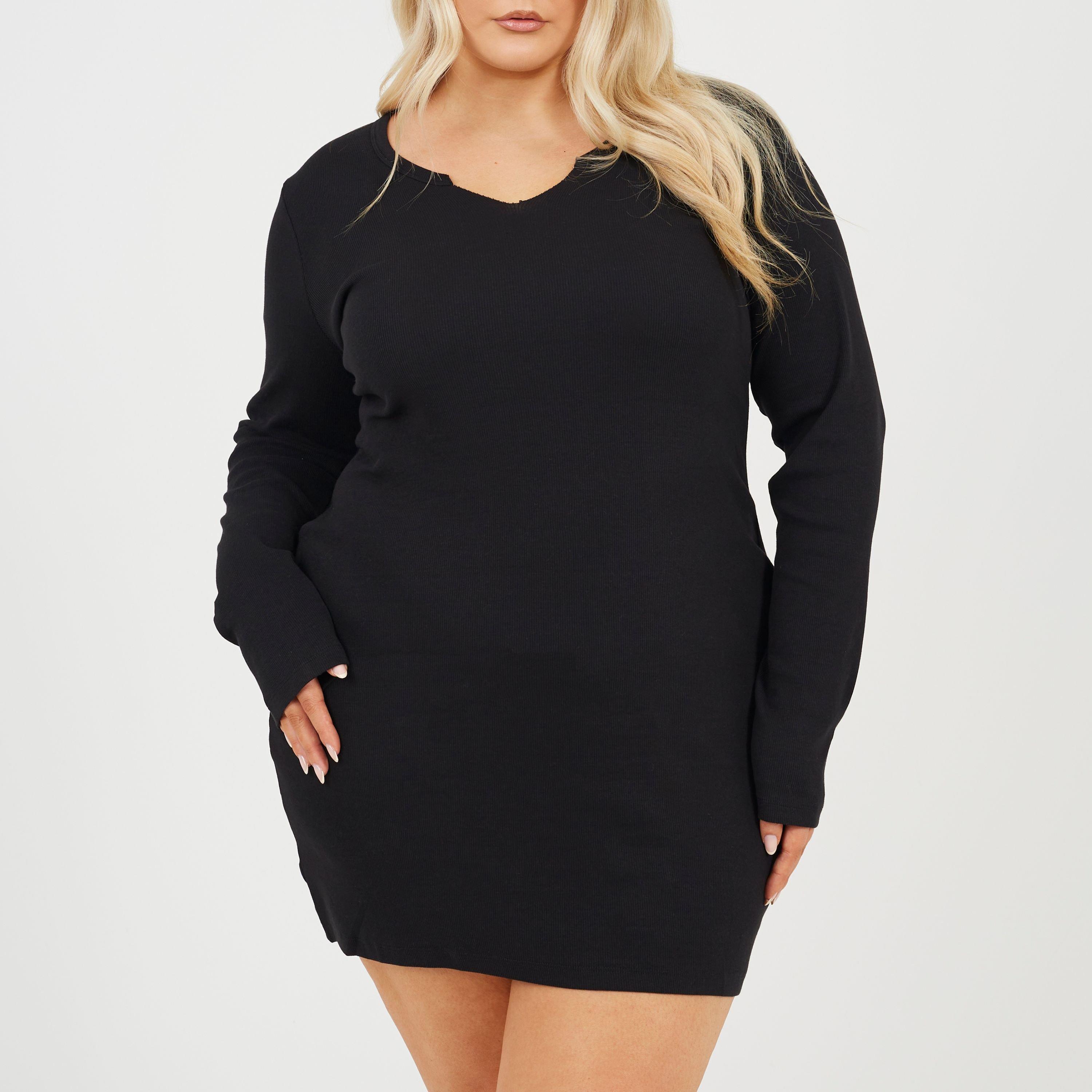 BS Plus Size Long Sleeve Mini Dress with Notch Neck Detail