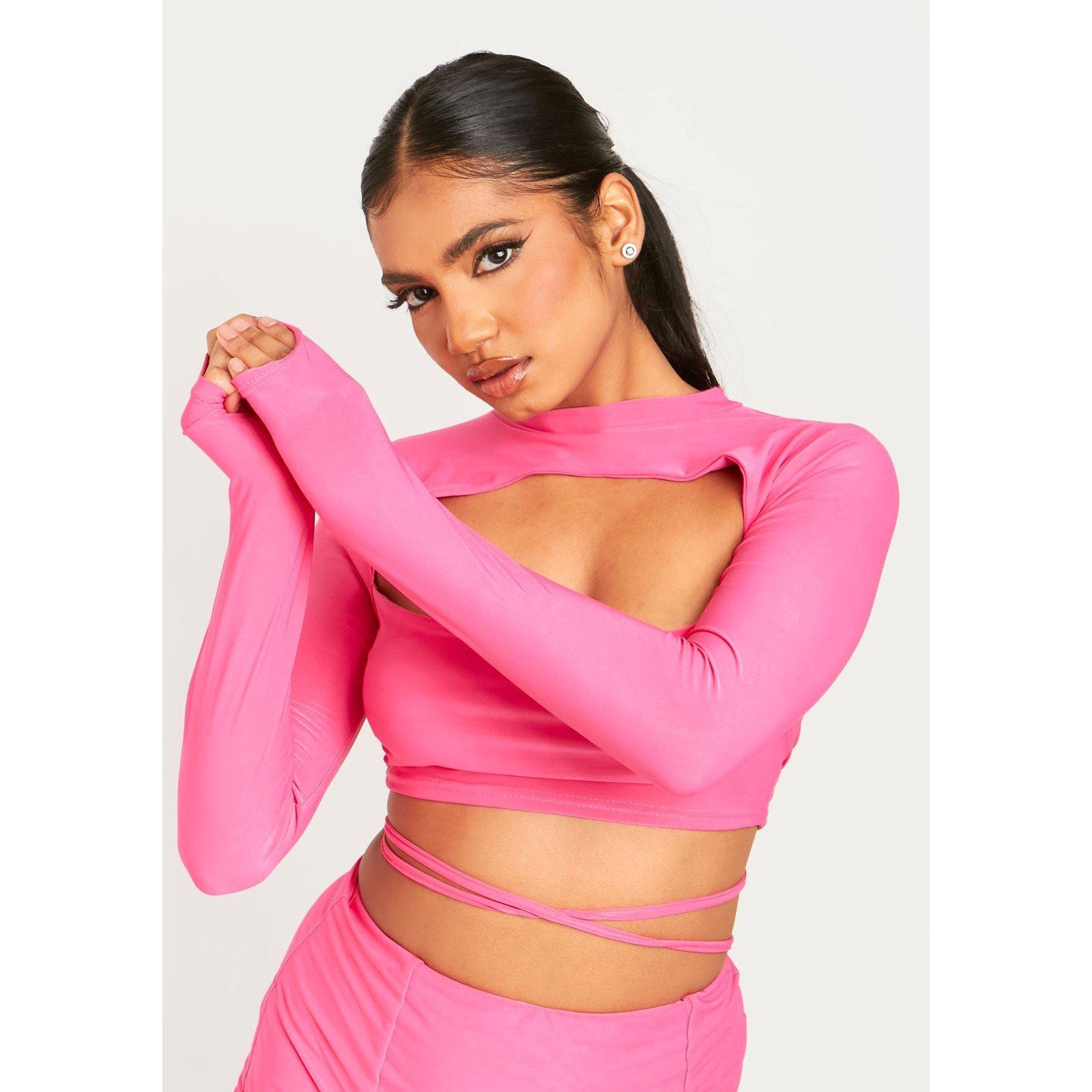 Cut Out Lace Up Long Sleeve Crop Top