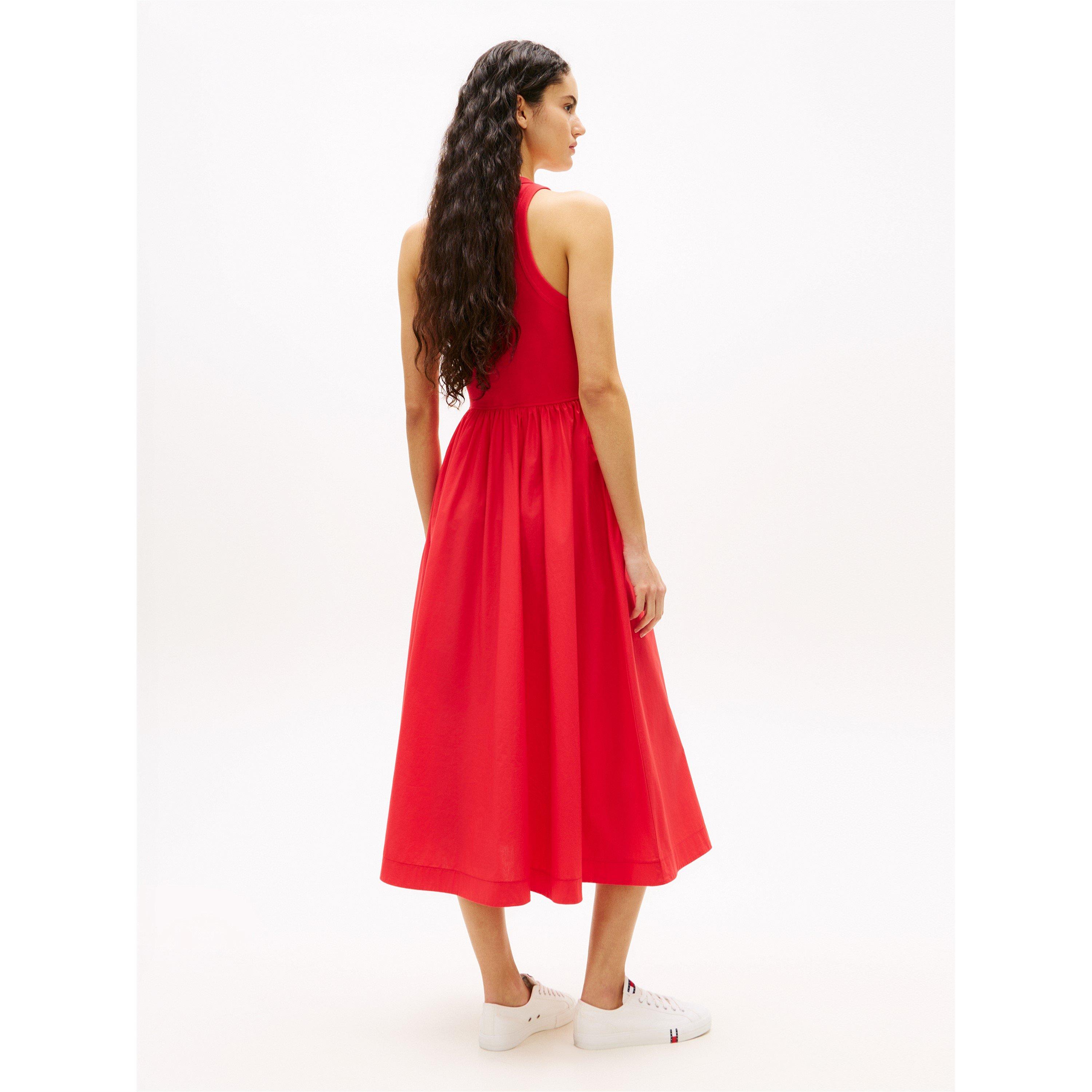 Haljina Tommy Jeans Women's Long Maxi nudi dizajn do poda koji donosi suptilnu prisutnost. Njena produžena kroja održava profil uskim za svakodnevno nošenje.