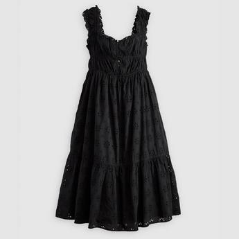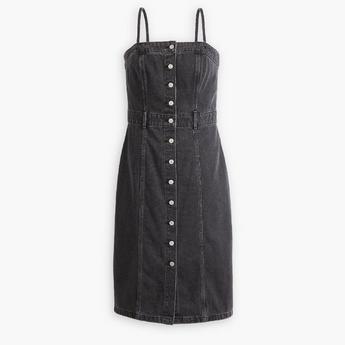 Lovedrobe Black Rose Jacquard Button Up Pinafore Dress